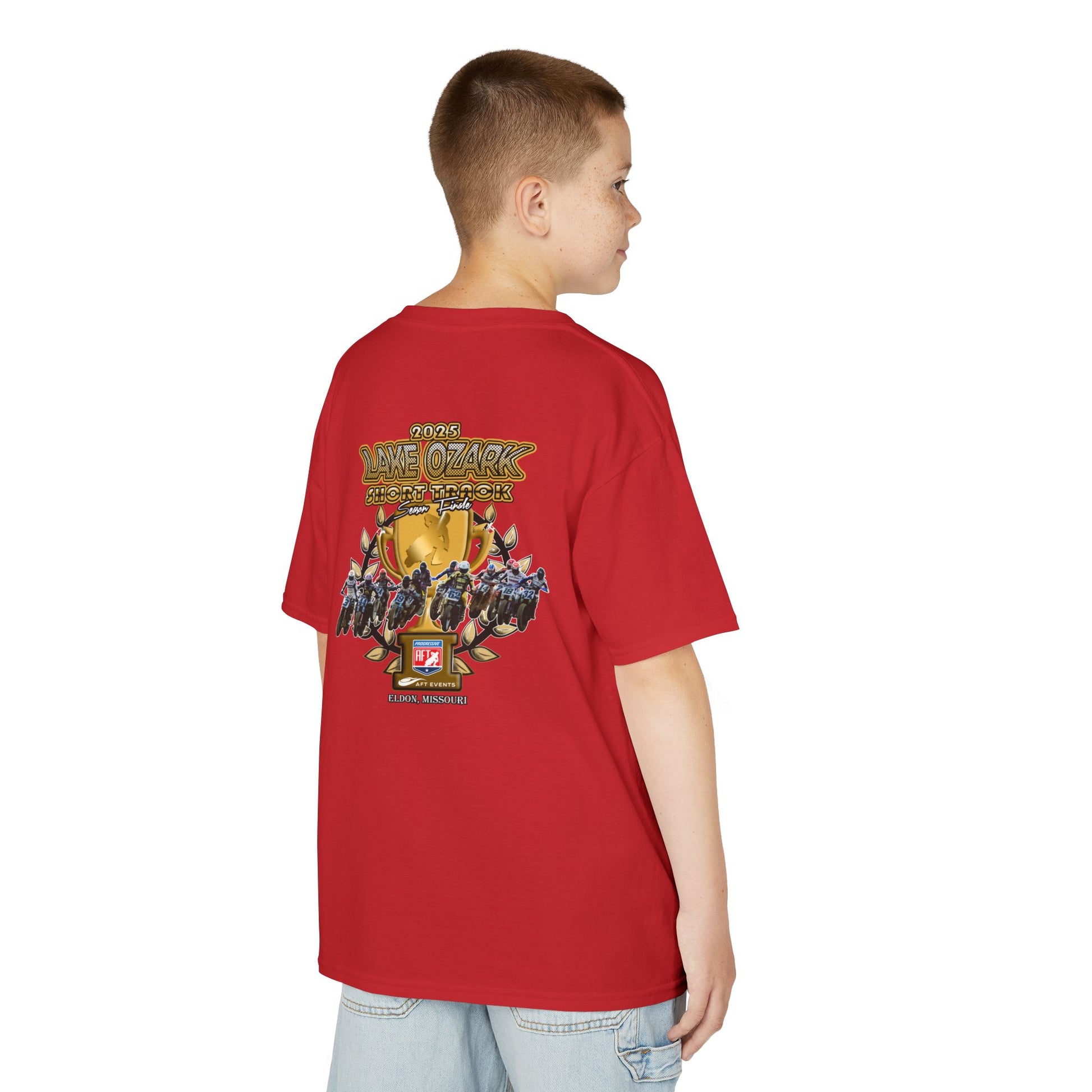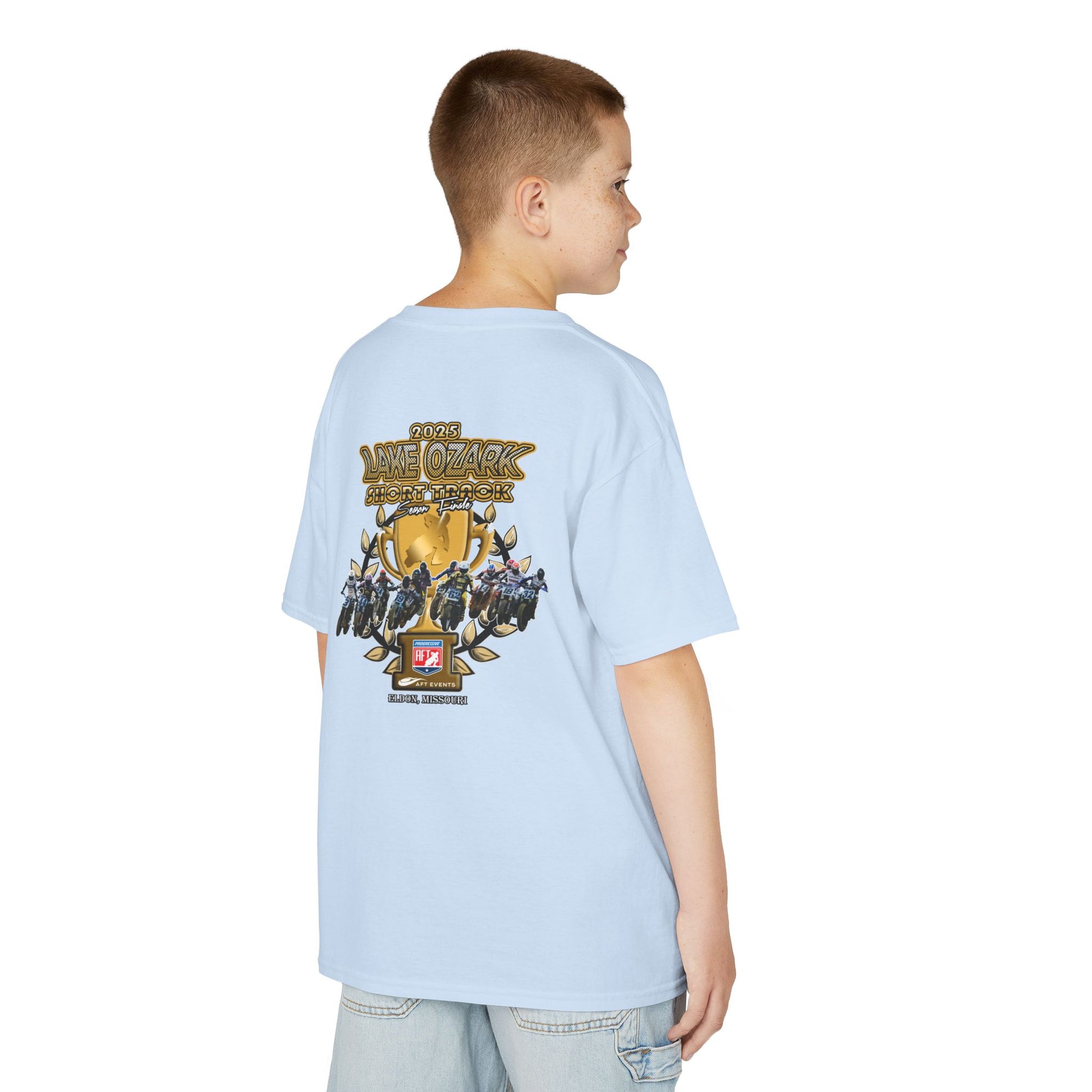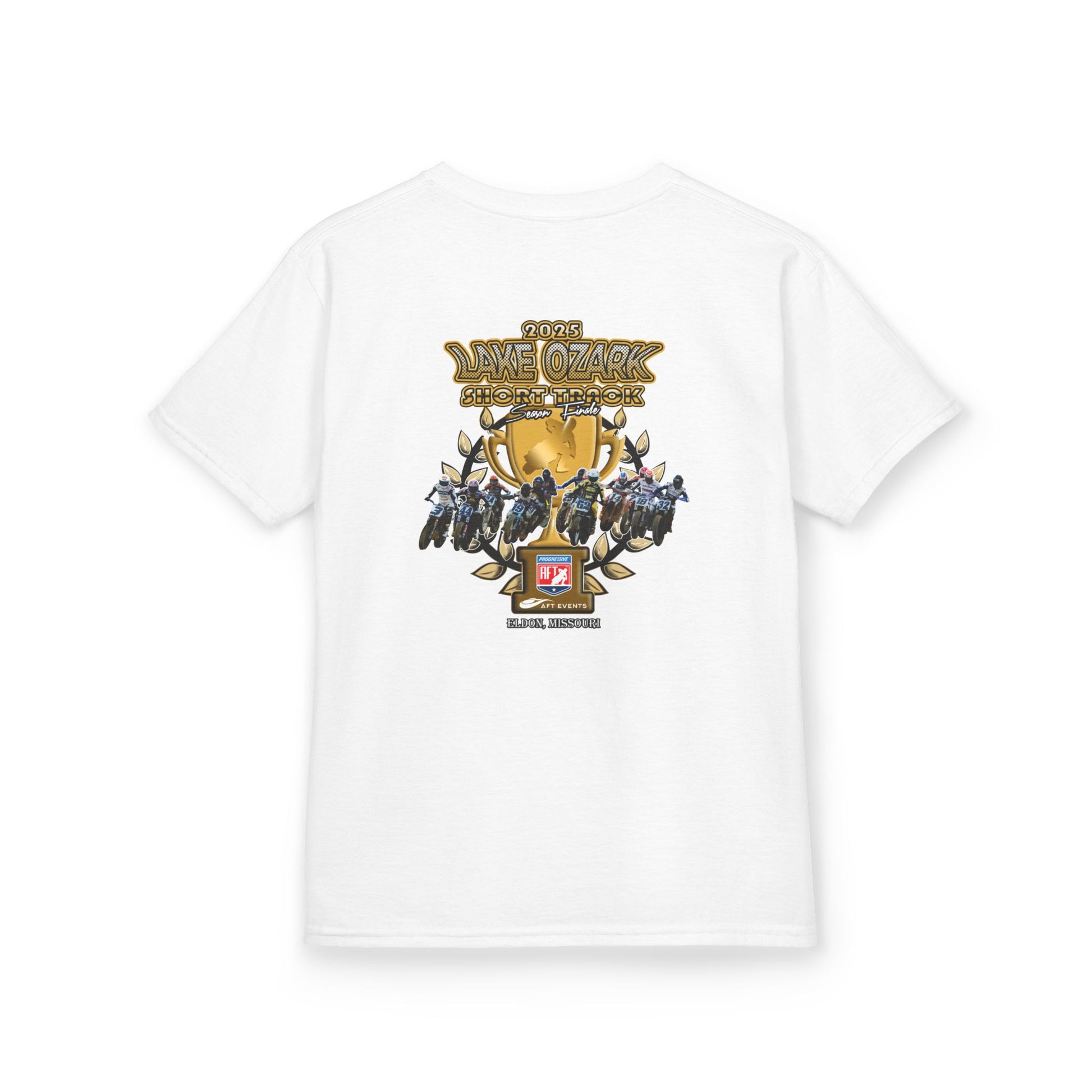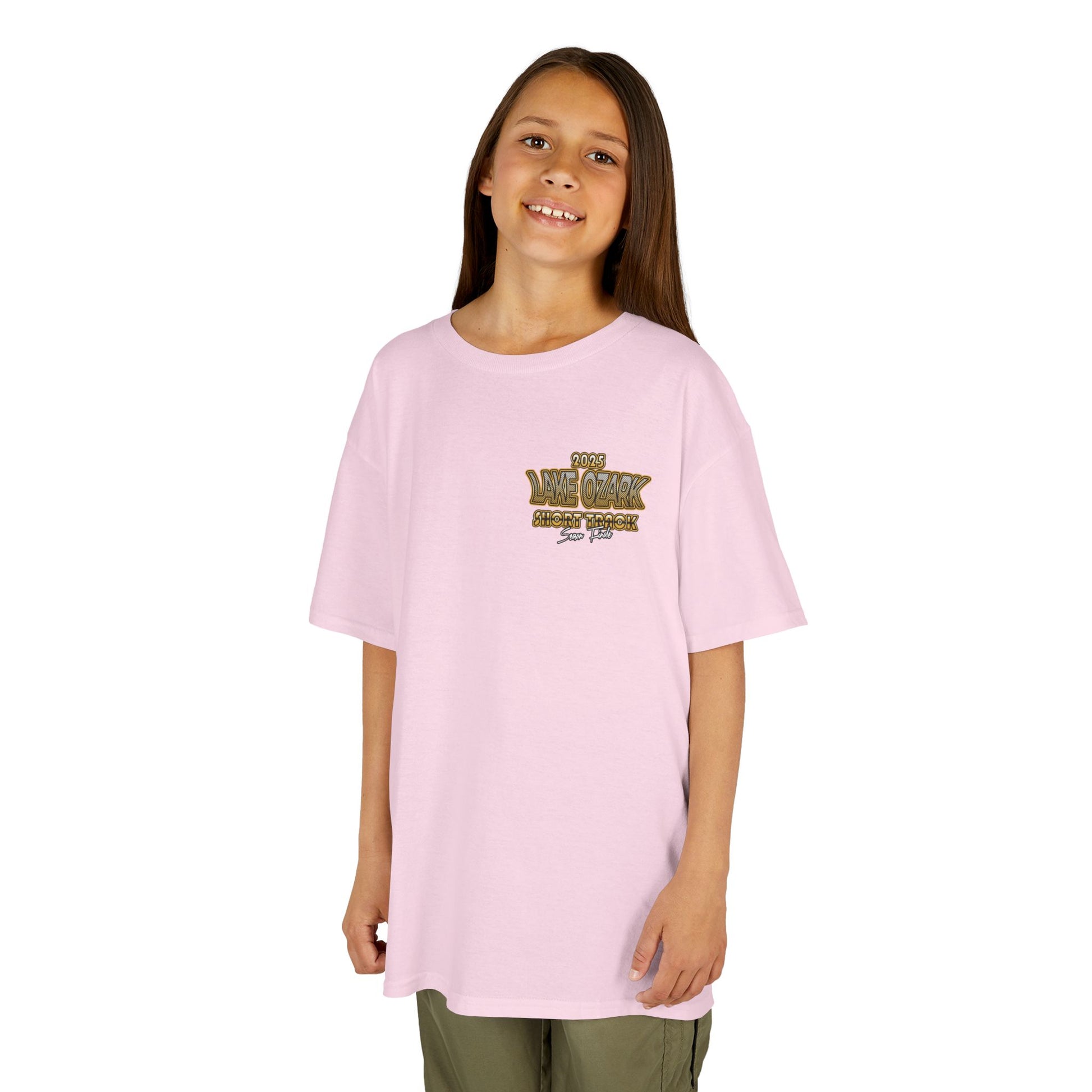 Introducing our 2025 Lake Ozark ST Short Sleeve Youth T-Shirt, the perfect addition to your child's wardrobe. Bright, fun designs bring a vibrant touch that every young flat track fan will love. This tee captures the spirit of the Lake Ozark Short Track, making it ideal for casual outings, beach days, and an evening at the races. It’s the perfect gift for birthdays, family vacations, or just because! Made for play and relaxation, it offers a stylish yet comfy fit, perfect for kids who love to move. Celebrate life’s joyful moments and let your child's personality shine with this must-have shirt!