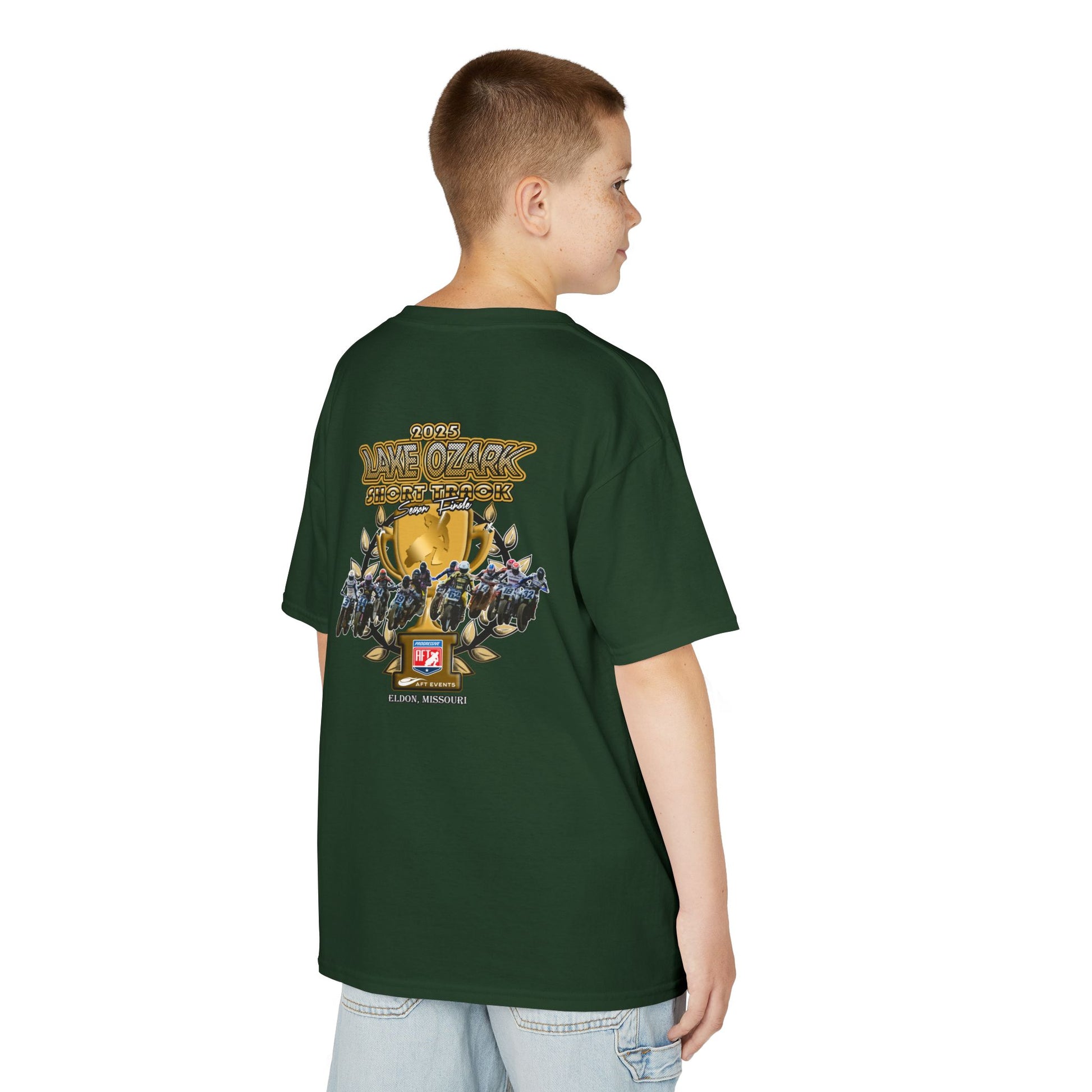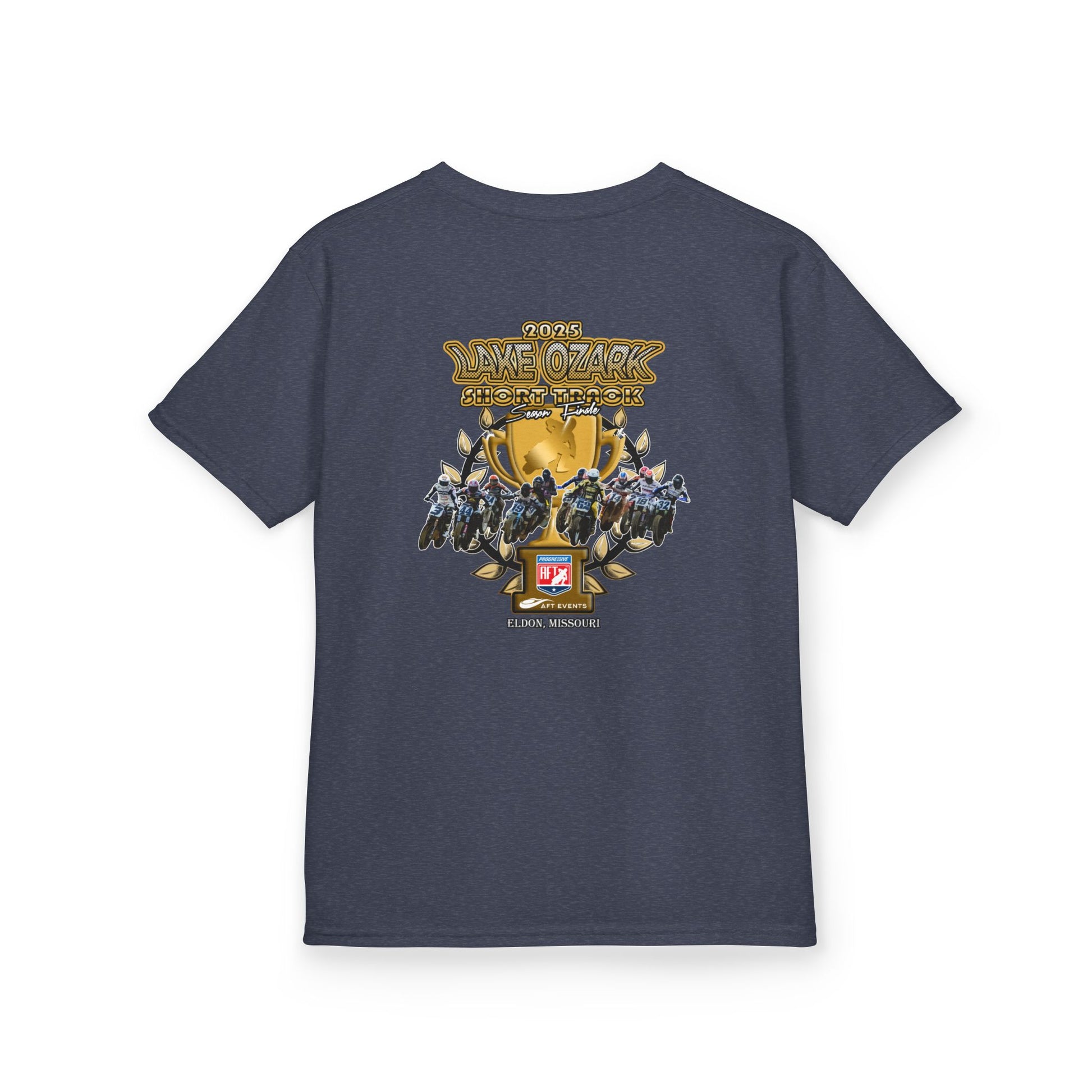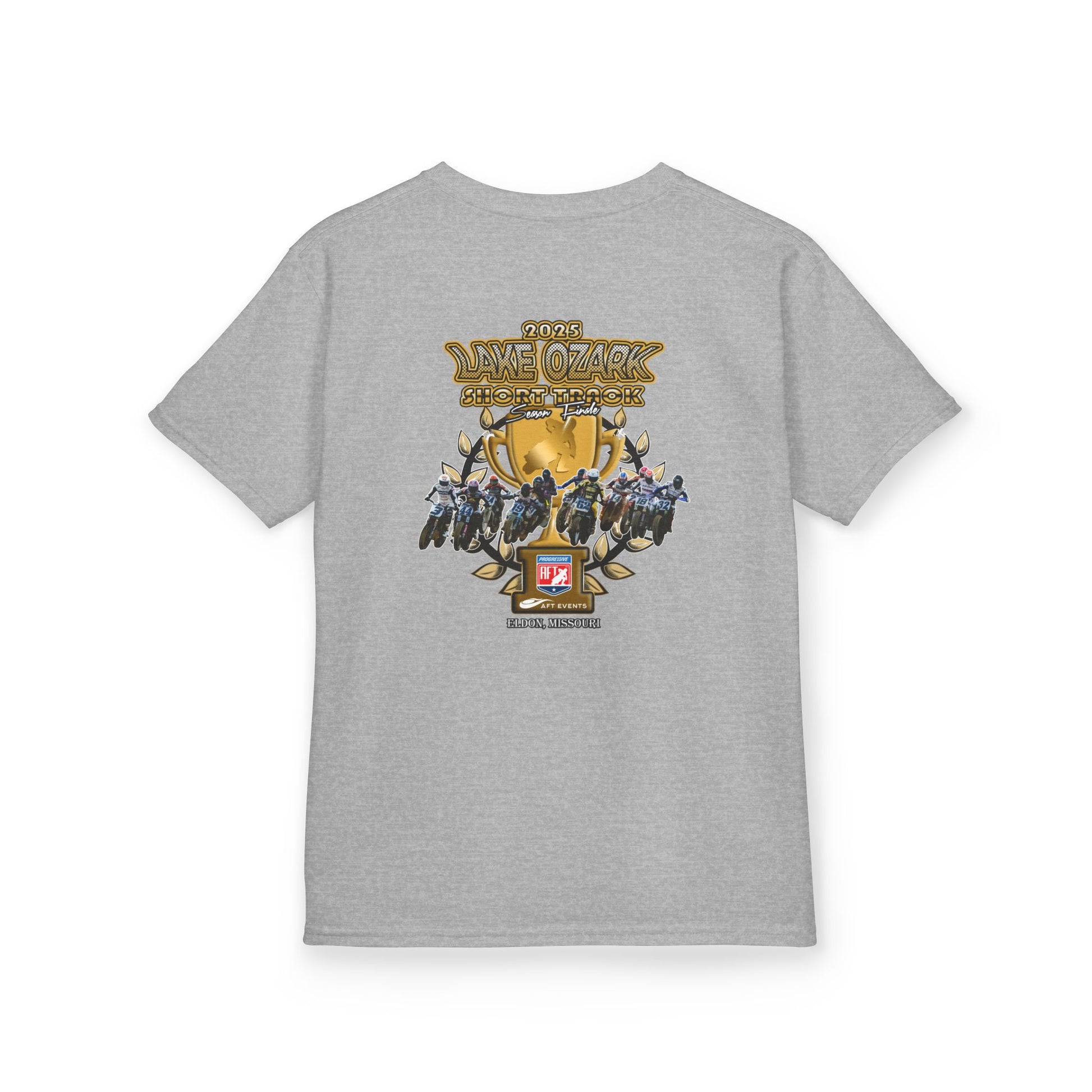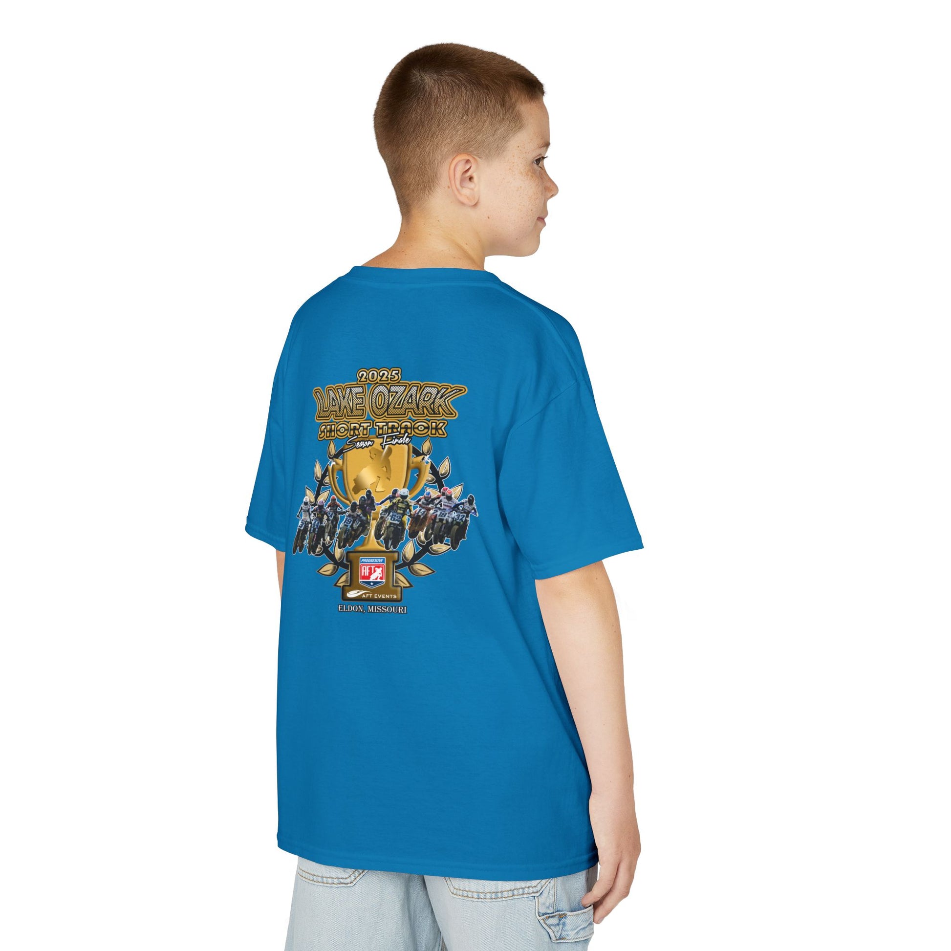 Introducing our 2025 Lake Ozark ST Short Sleeve Youth T-Shirt, the perfect addition to your child's wardrobe. Bright, fun designs bring a vibrant touch that every young flat track fan will love. This tee captures the spirit of the Lake Ozark Short Track, making it ideal for casual outings, beach days, and an evening at the races. It’s the perfect gift for birthdays, family vacations, or just because! Made for play and relaxation, it offers a stylish yet comfy fit, perfect for kids who love to move. Celebrate life’s joyful moments and let your child's personality shine with this must-have shirt!
