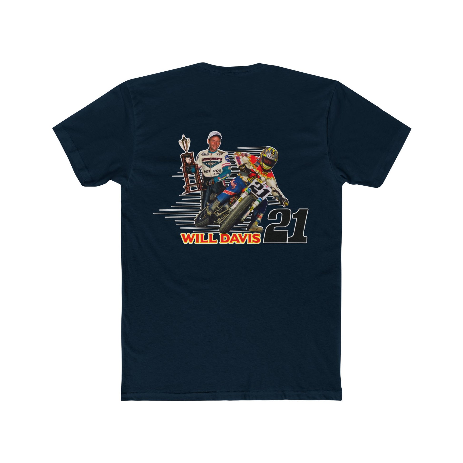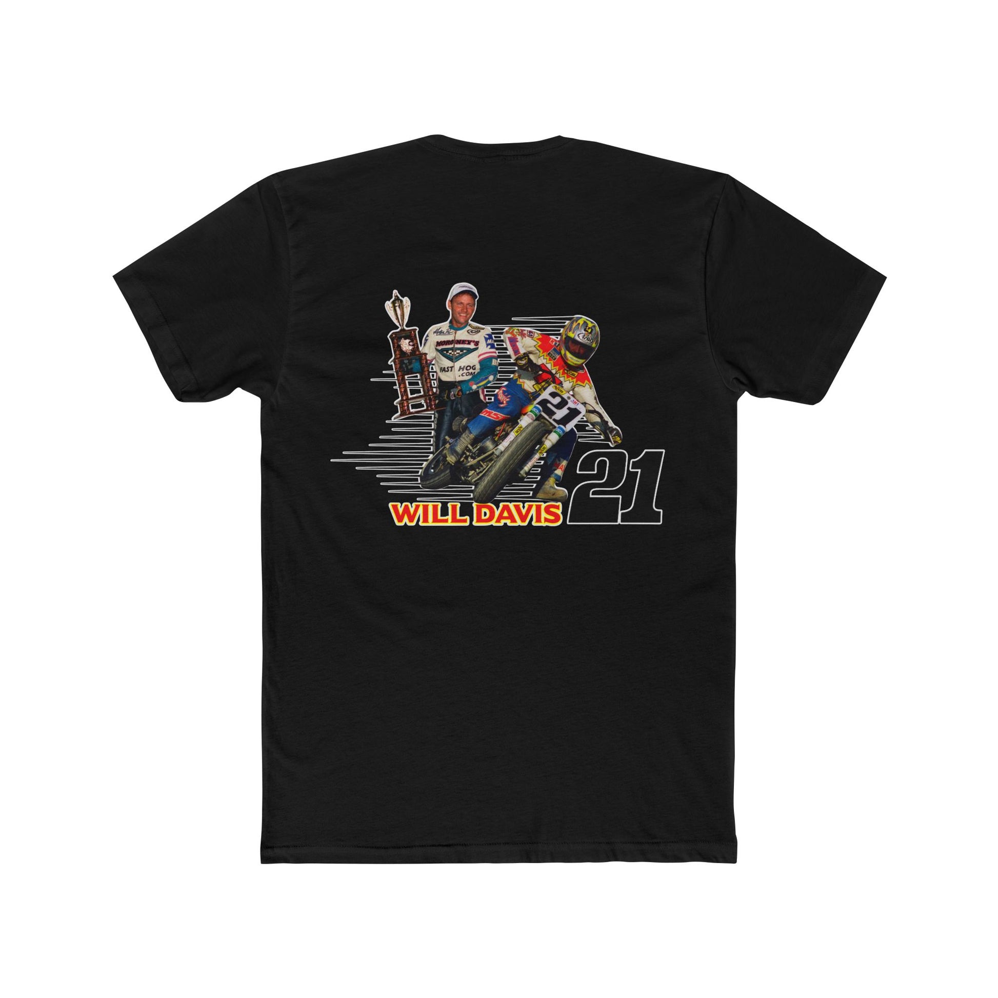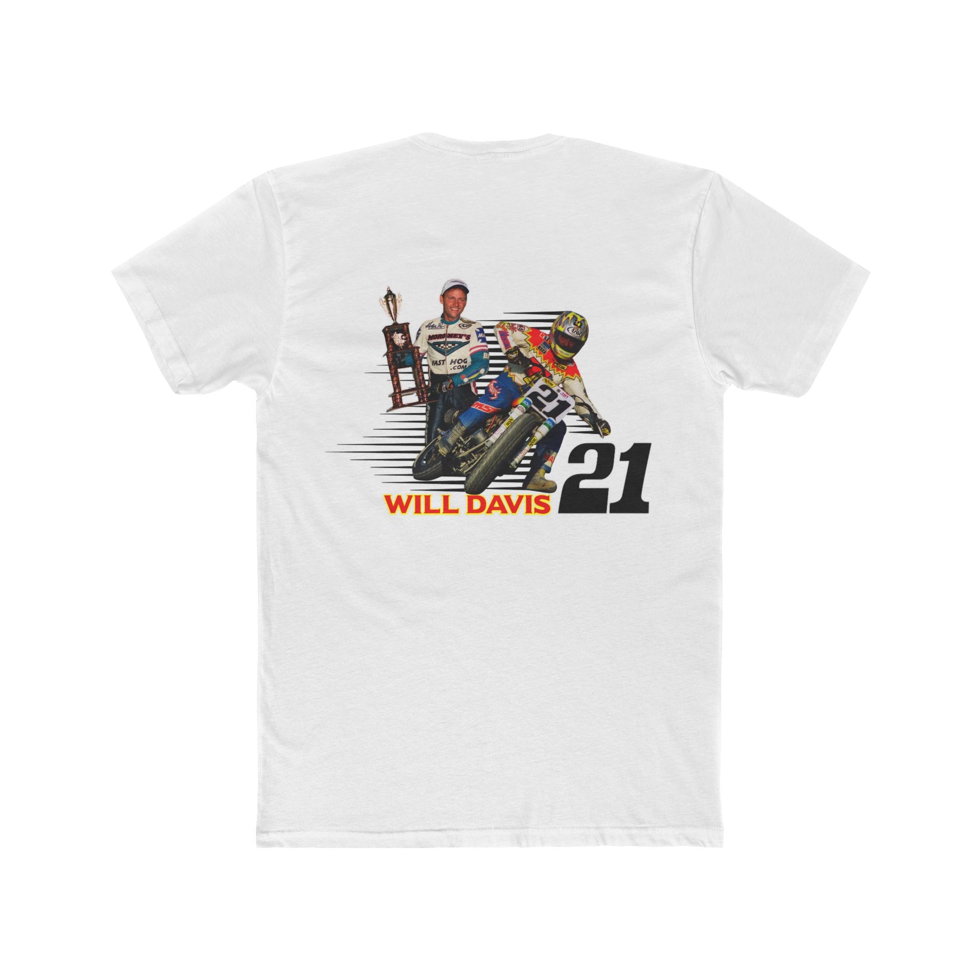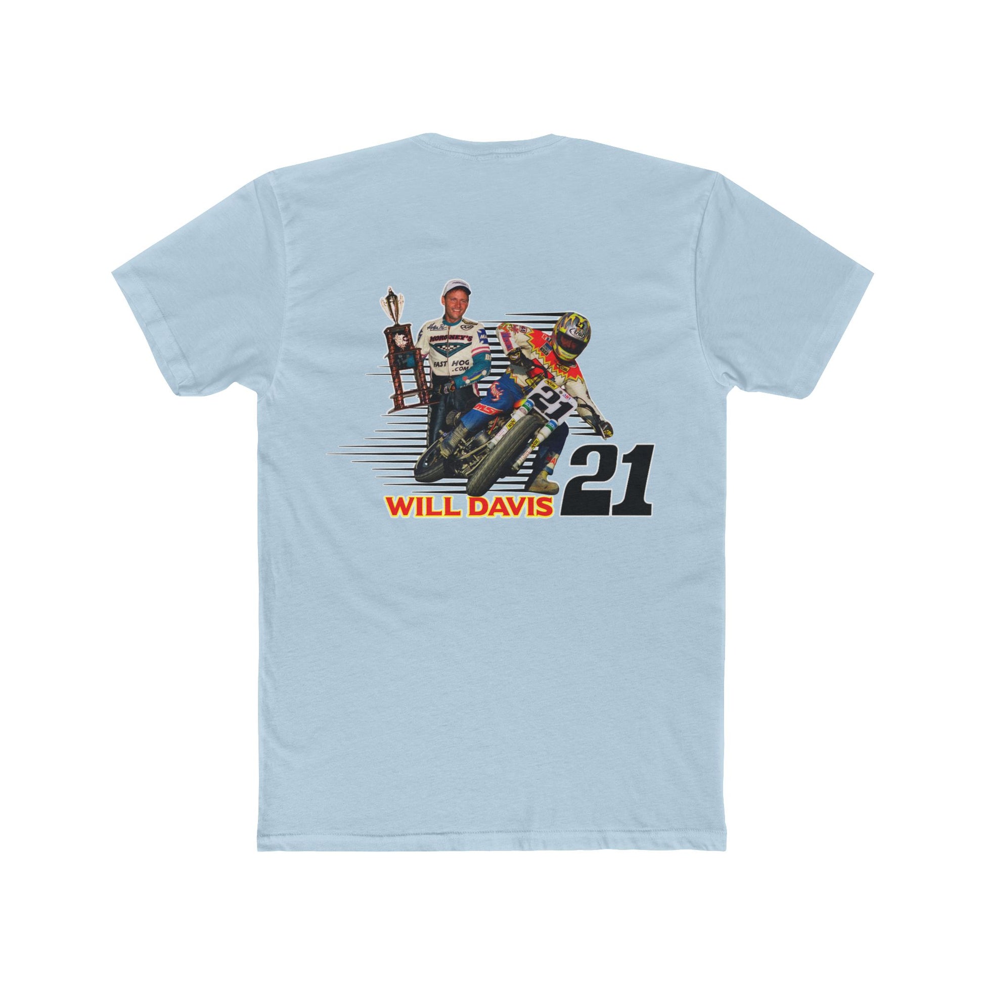 Introducing the Will Davis Flat Track Legend Short Sleeve T-Shirt from American Flat Tracker Clothing Co.'s AFT Legends line, perfect for bringing a bit of flair to your everyday wardrobe. Made from soft and breathable 100% combed, ring-spun cotton, this tee offers comfort you can wear all day long. Whether you're heading to the track, a weekend gathering, or simply running errands, this tee adds a sporty vibe to any outfit. Ideal for racing enthusiasts and anyone who loves a bold statement piece. Celebrate special occasions and holidays like birthdays or race day in style!