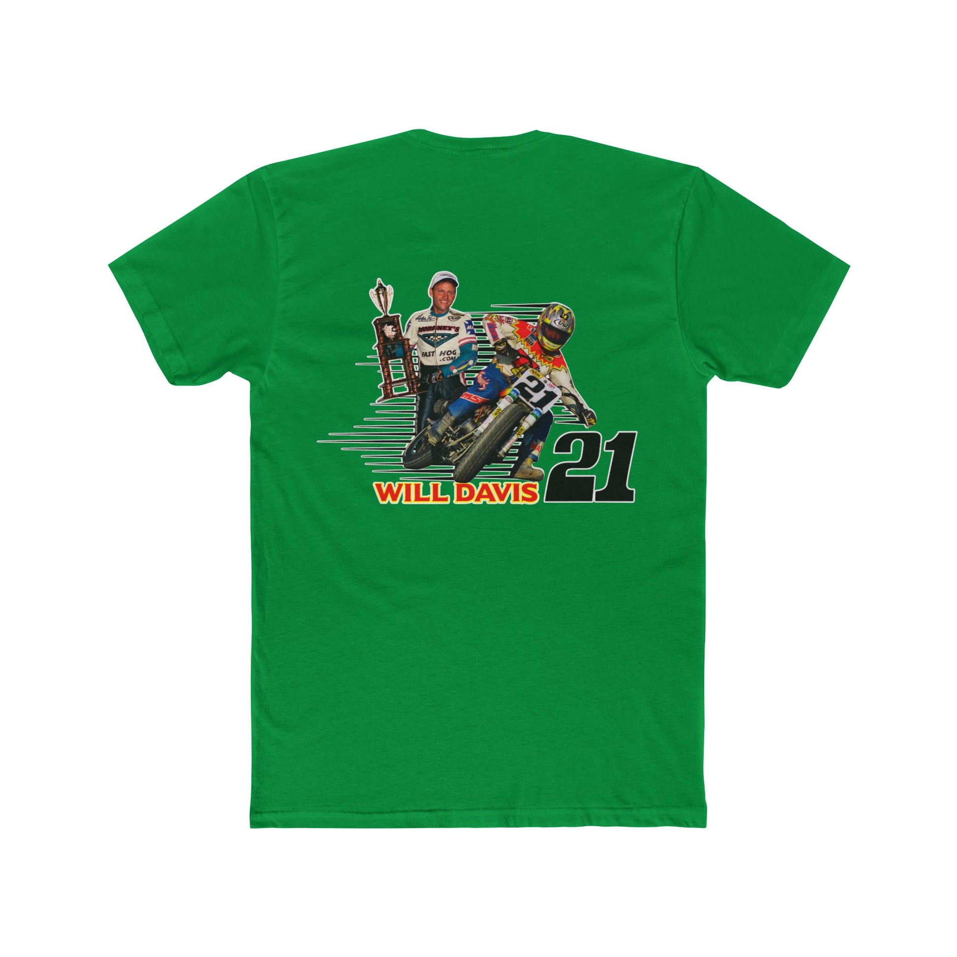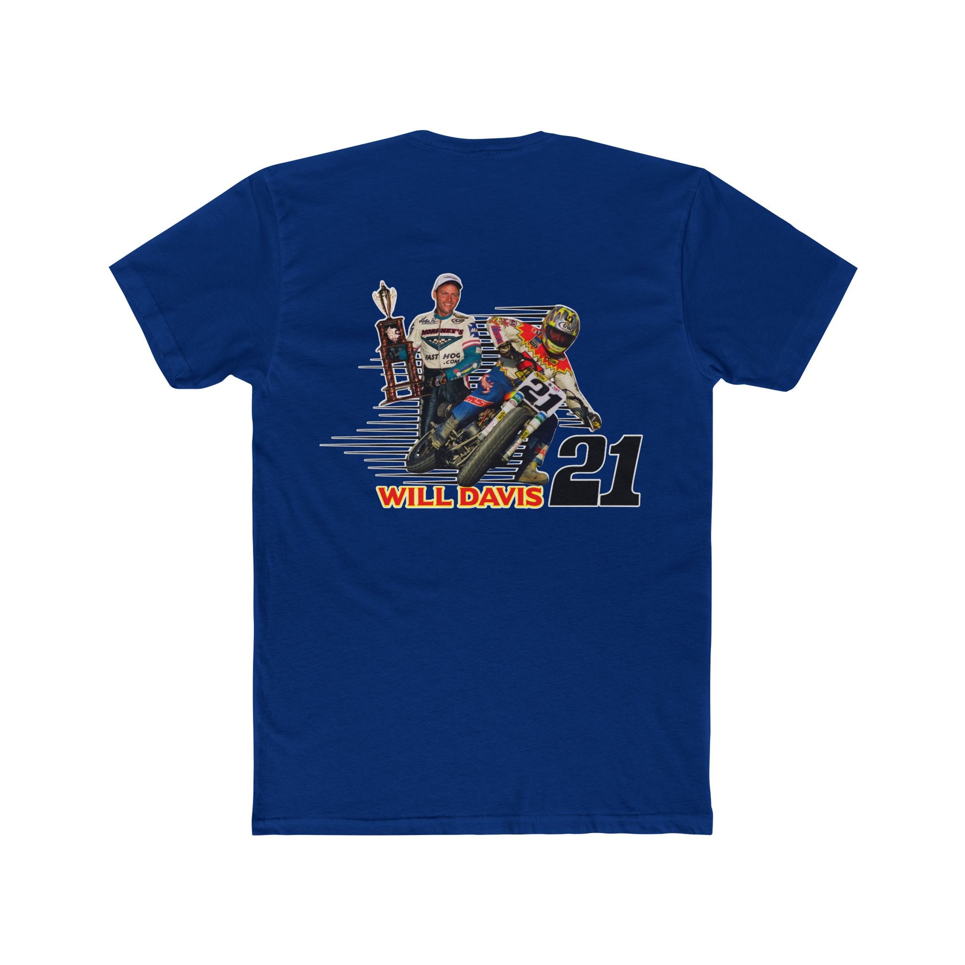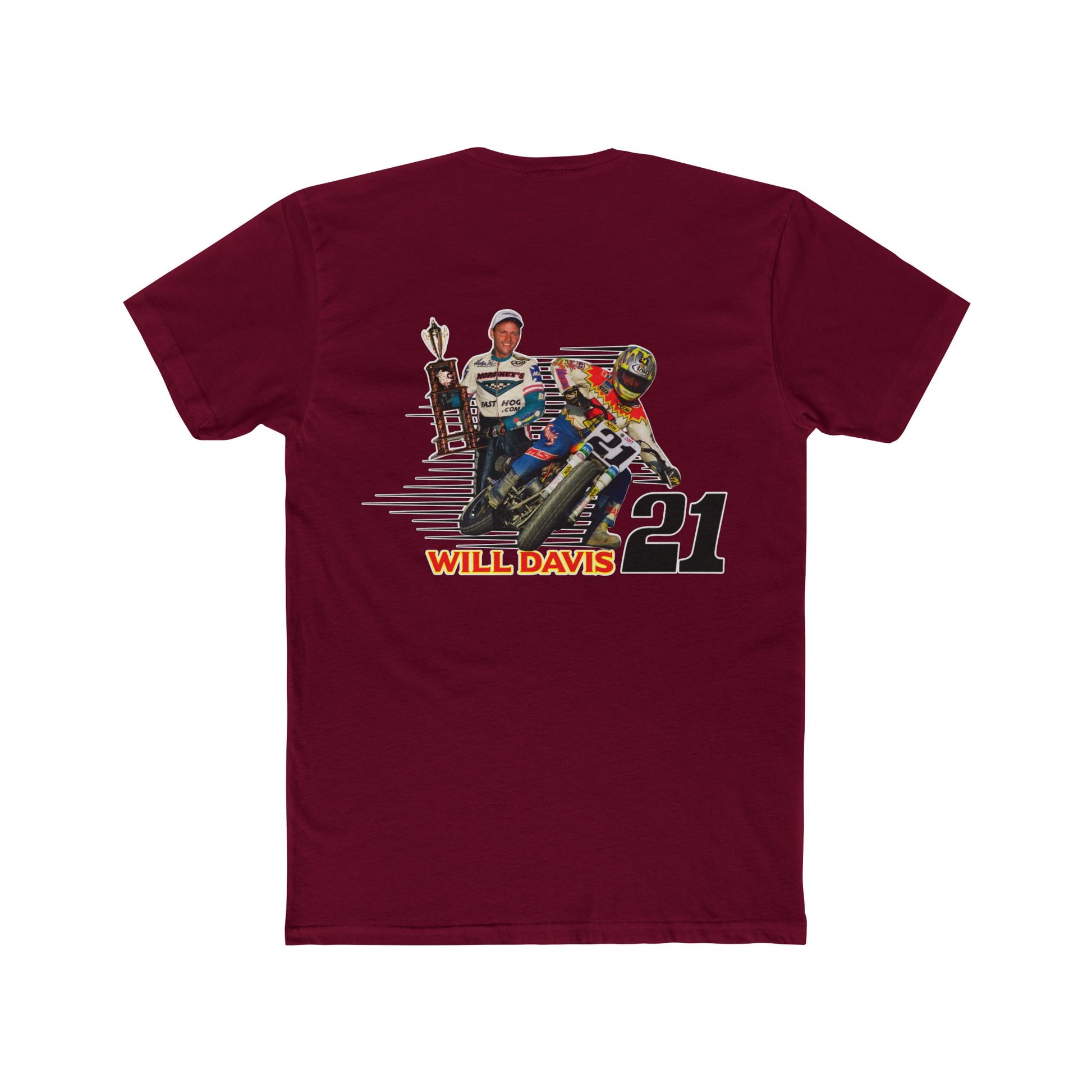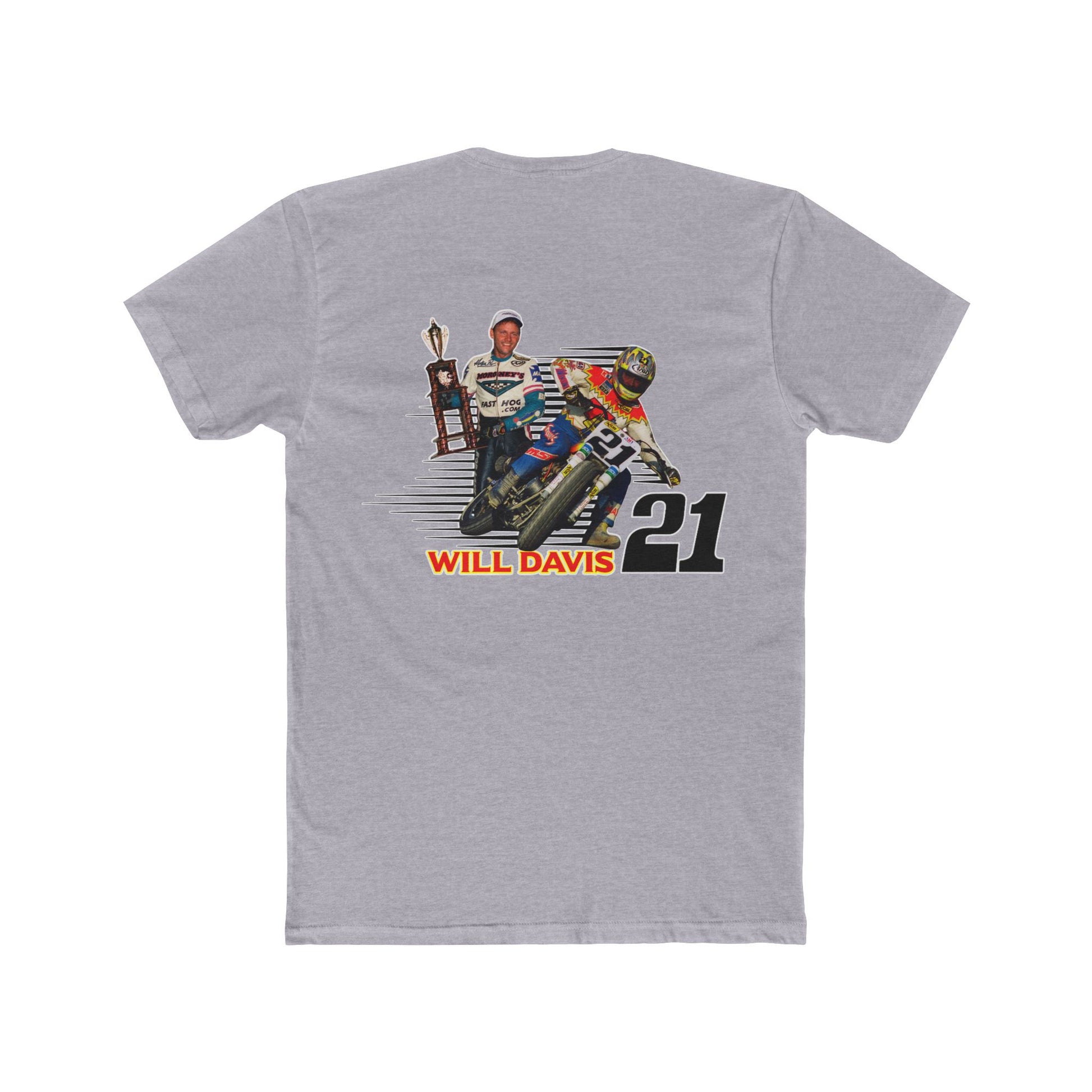 Introducing the Will Davis Flat Track Legend Short Sleeve T-Shirt from American Flat Tracker Clothing Co.'s AFT Legends line, perfect for bringing a bit of flair to your everyday wardrobe. Made from soft and breathable 100% combed, ring-spun cotton, this tee offers comfort you can wear all day long. Whether you're heading to the track, a weekend gathering, or simply running errands, this tee adds a sporty vibe to any outfit. Ideal for racing enthusiasts and anyone who loves a bold statement piece. Celebrate special occasions and holidays like birthdays or race day in style!